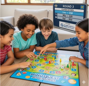 In a world full of digital ads that people skip, physical games bring brands back into homes, classrooms,and communities. Our educational game boards, scorecards, and quiz kits are designed to entertain,educate, and subtly promote your brand every time they’re played